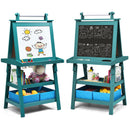 - Double-sided whiteboard and chalkboard allows two kids to draw at the same time